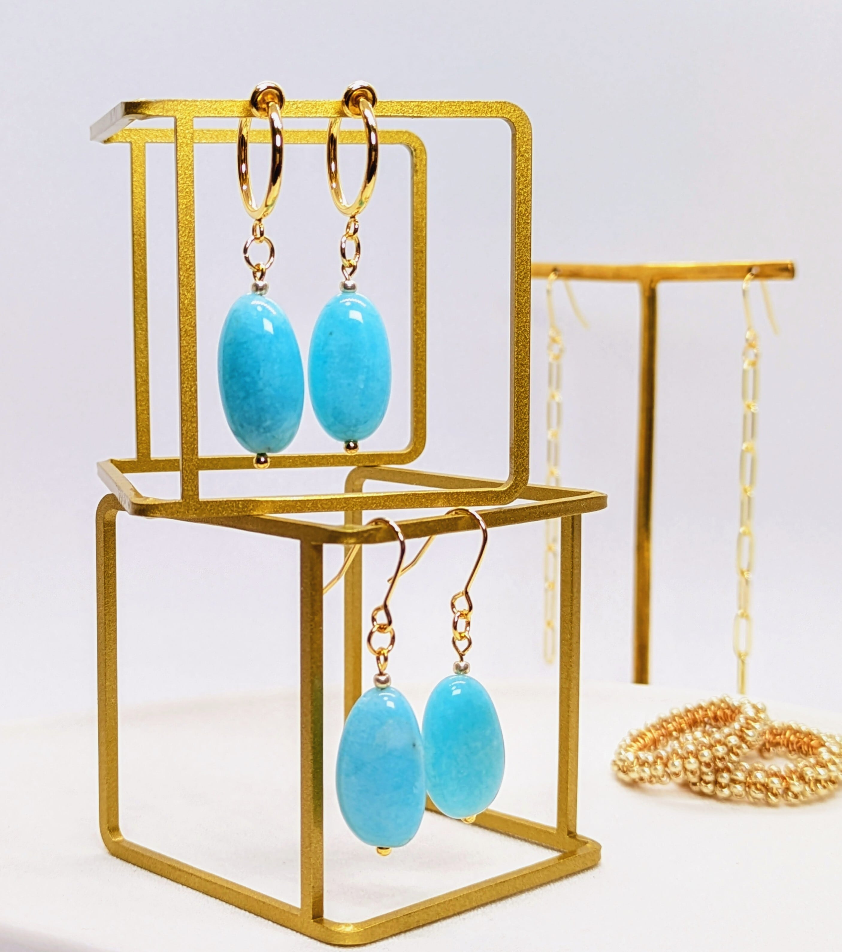 海のような慈愛に満ちたアマゾナイト(フックピアス/フープイヤリング/ゴールド)