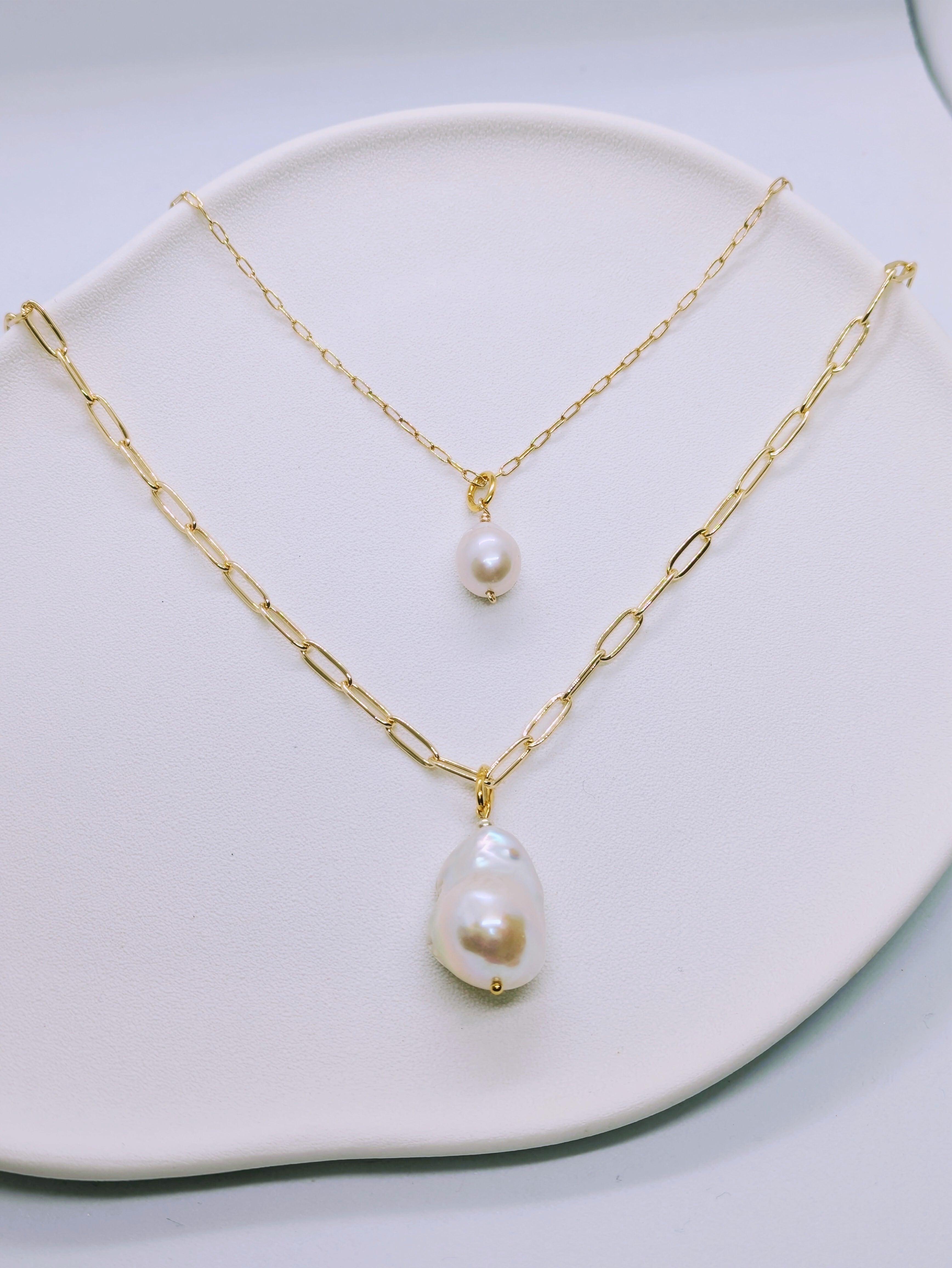 【骨格ストレート名品】組み合わせ無限∞ バロック淡水パールネックレス|チェーン2本+パールチャーム2個セット