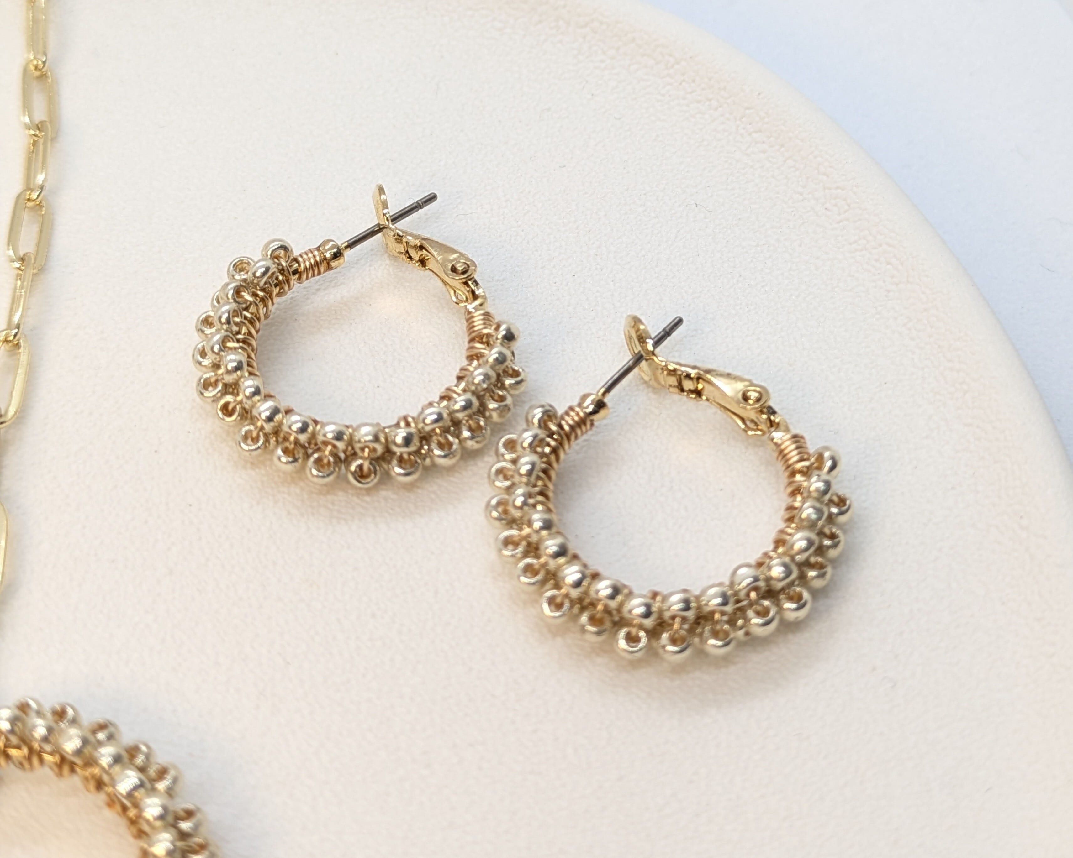 ゴージャスに見えるのに、どんな装いにも軽やかになじむ。ビーズのアクセサリーシリーズ。ネックレスとセットでもお使いいただけます。